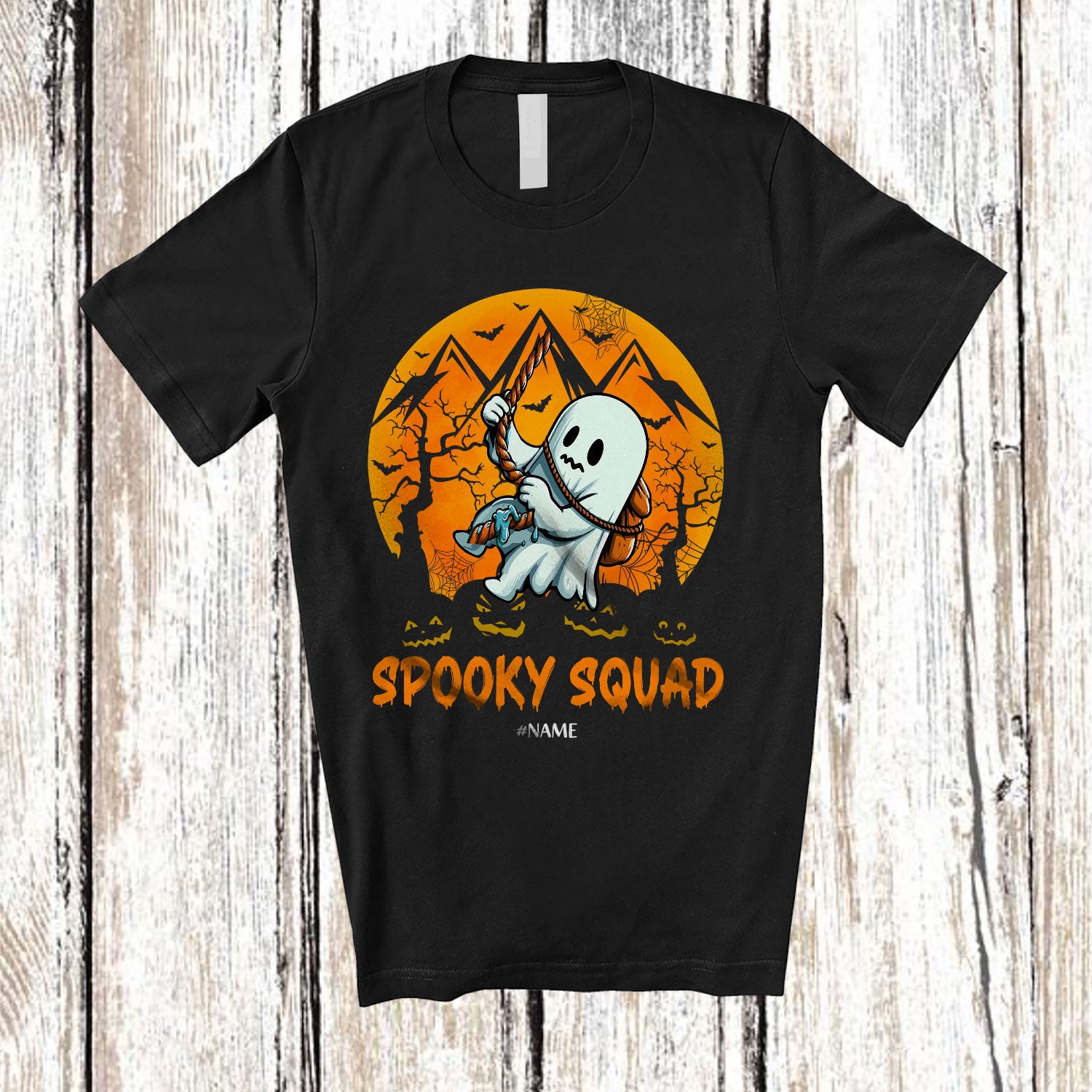 This Personalized Spooky Squad; Humorous Halloween Moon Custom Name Boo Ghost Climbing T-Shirt is great idea gift for your family, friends in this birthday, christmas, mother's day, father's day, patrick's day or any holiday.