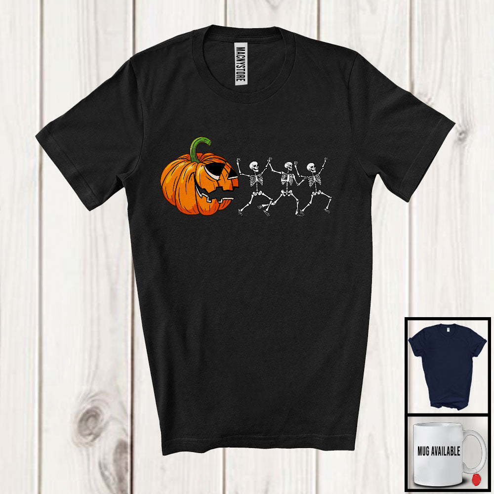 Pumpkin Eating Skeletons, Horror Halloween Costume Skeleton Running, Family Group T-Shirt