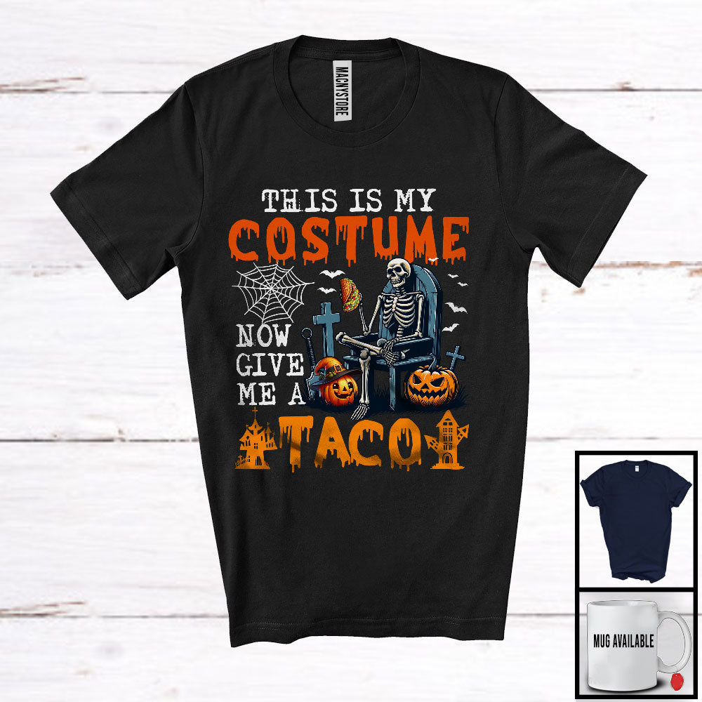 This Is My Costume Now Give Me A Taco, Humorous Halloween Skeleton Eating, Food Lover T-Shirt