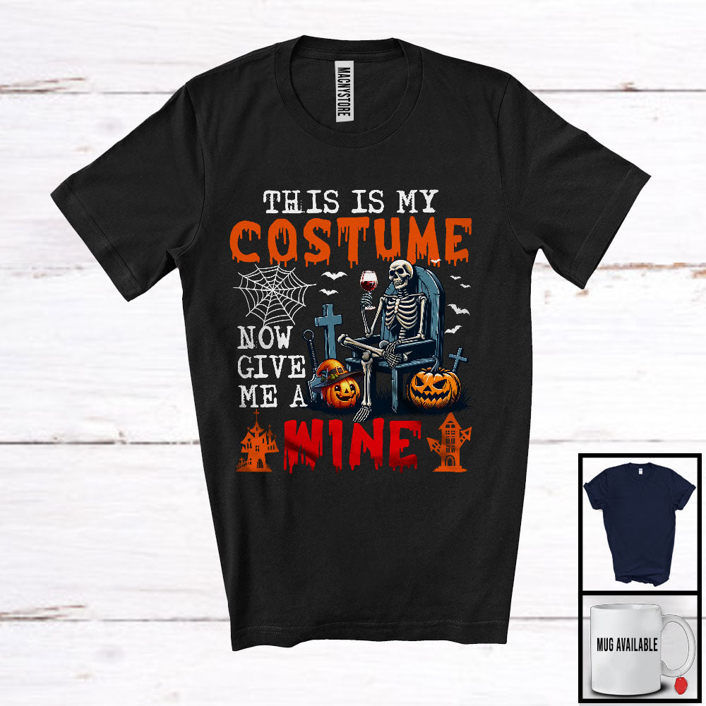 This Is My Costume Now Give Me A Wine, Humorous Halloween Skeleton Drinking, Drunker T-Shirt