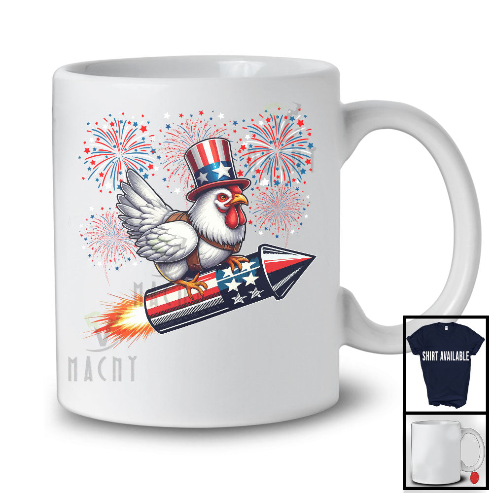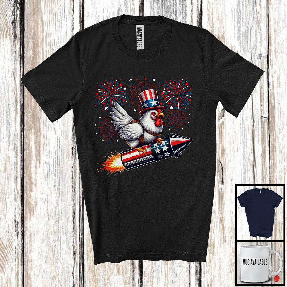 Chicken Riding Firecracker, Humorous 4th Of July USA Fireworks, Patriotic Farm Animal Farmer T-Shirt