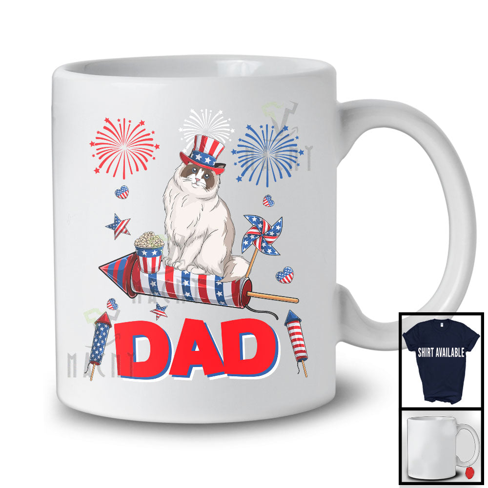 Papa, adorable fête des pères 4 juillet Feu d'artifice de chat Ragdoll, T-shirt patriotique familial du drapeau américain