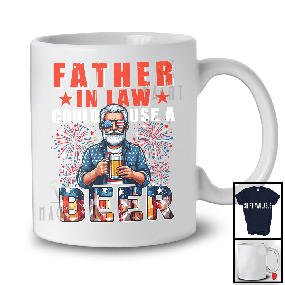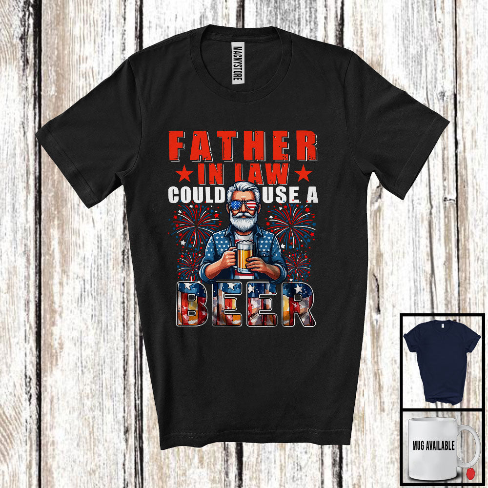 • Father in law Could Use A Beer, Awesome 4th Of July Drinking Beer Fireworks, Patriotic Family T-Shirt. This cotton t-shirt is a durable staple product with a classic fit. One of the most popular items, it has a relaxed style made for everyday and casual wear.