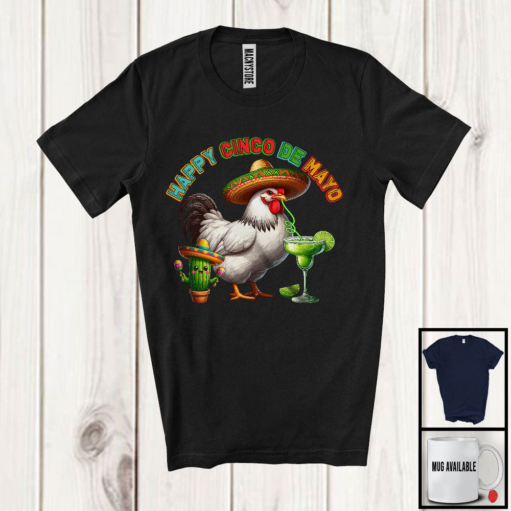 Happy Cinco De Mayo, Lovely Mexican Chicken Sombrero Drinking Margarita Lover, Family Group T-Shirt