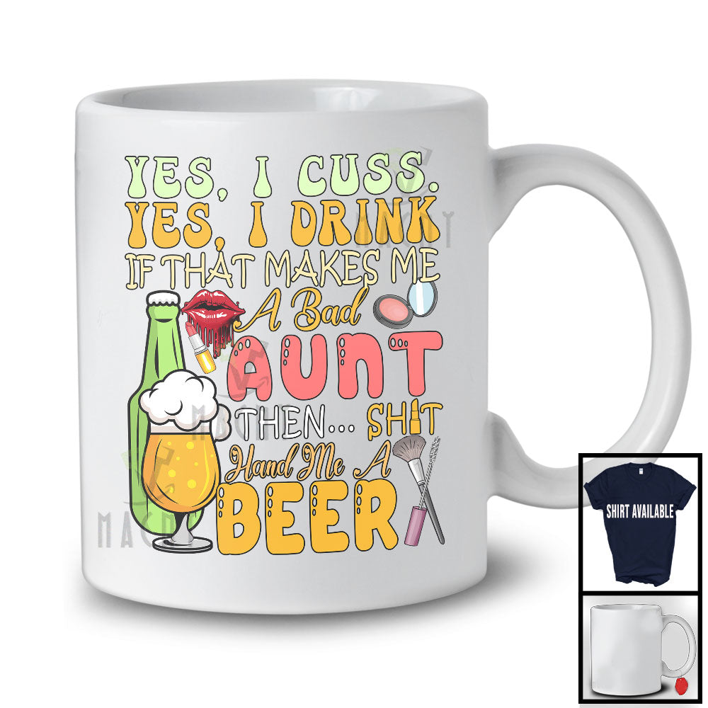 I Cuss I Drink If That Makes Me A Bad Aunt Hand Me A Beer, Sarcastic Drinking Lover, Drunker T-Shirt. This cotton t-shirt is a durable staple product with a classic fit. One of the most popular items, it has a relaxed style made for everyday and casual wear.