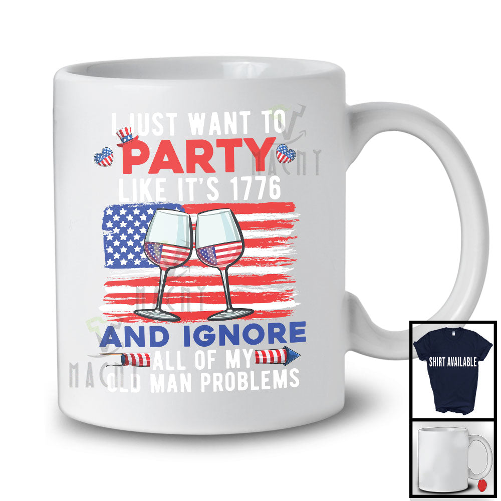 new MacnyStore - I Just Want To Party Like It's 1776, Proud 4th Of July Wine, American Flag Drinking Patriotic T-Shirt – Macnystore