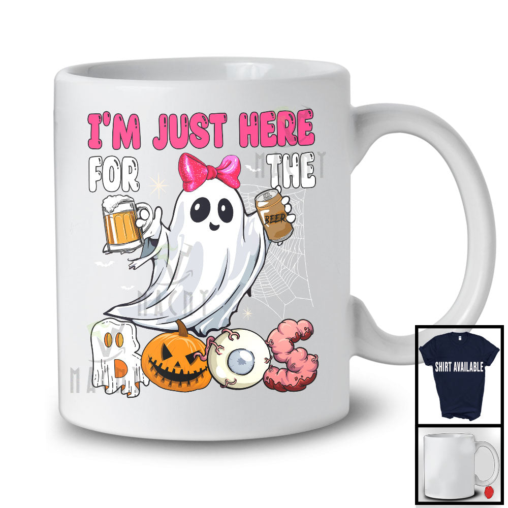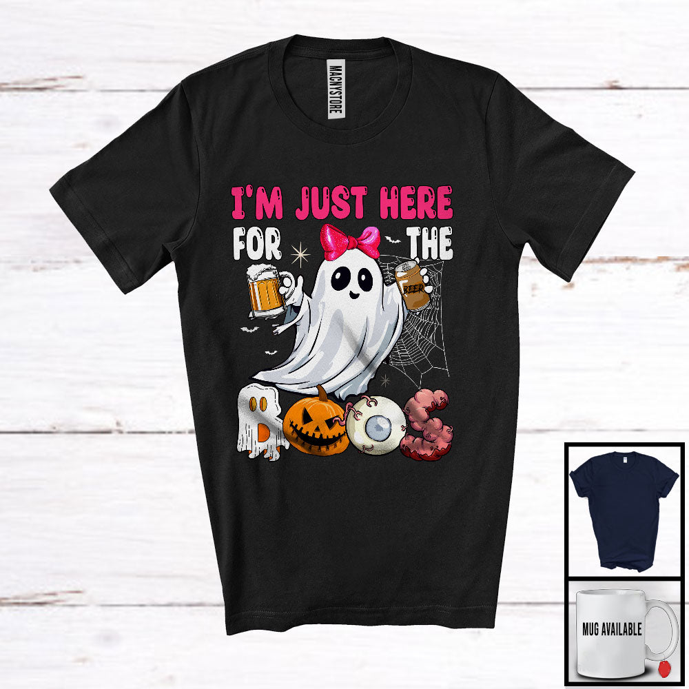 I'm Just Here For The Boos, Lovely Halloween Drinking Beer Ghost Boo, Pink Girl Women Group T-Shirt