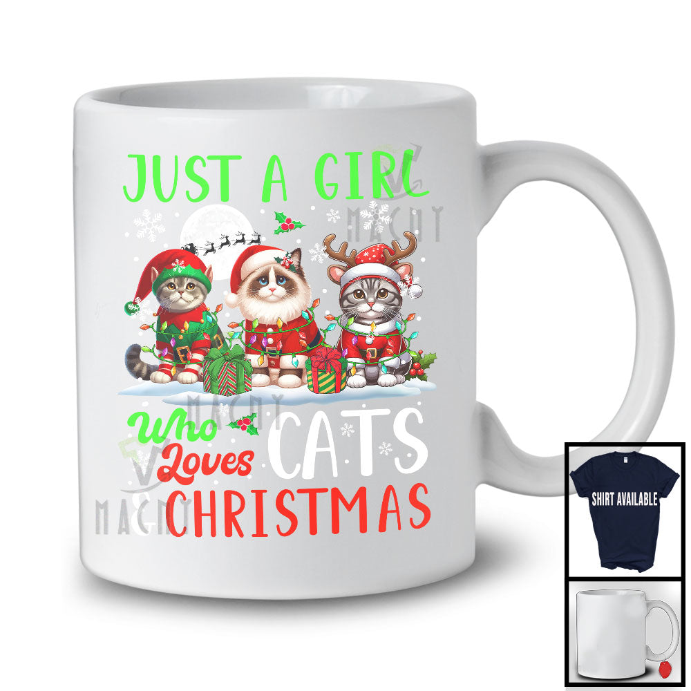 This Just A Girl Who Loves Cats And Christmas, Lovely Christmas Lights Snowing Around, Animal Lover T-Shirt is great idea gift for your family, friends in this birthday, christmas, mother's day, father's day, patrick's day or any holiday.