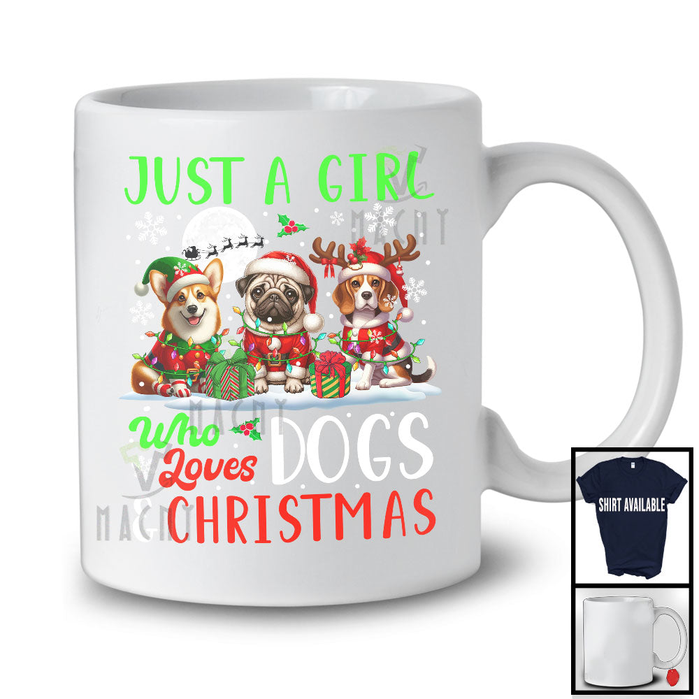 This Just A Girl Who Loves Dogs And Christmas, Lovely Christmas Lights Snowing Around, Animal Lover T-Shirt is great idea gift for your family, friends in this birthday, christmas, mother's day, father's day, patrick's day or any holiday.