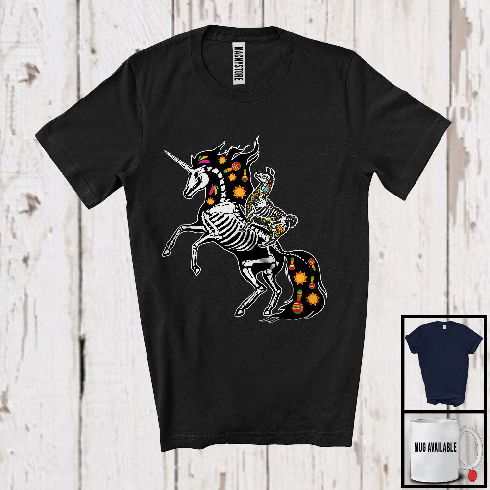 Llama Riding Unicorn Skeleton, Joyful Cinco De Mayo Unicorn Animal, Proud Mexican T-Shirt