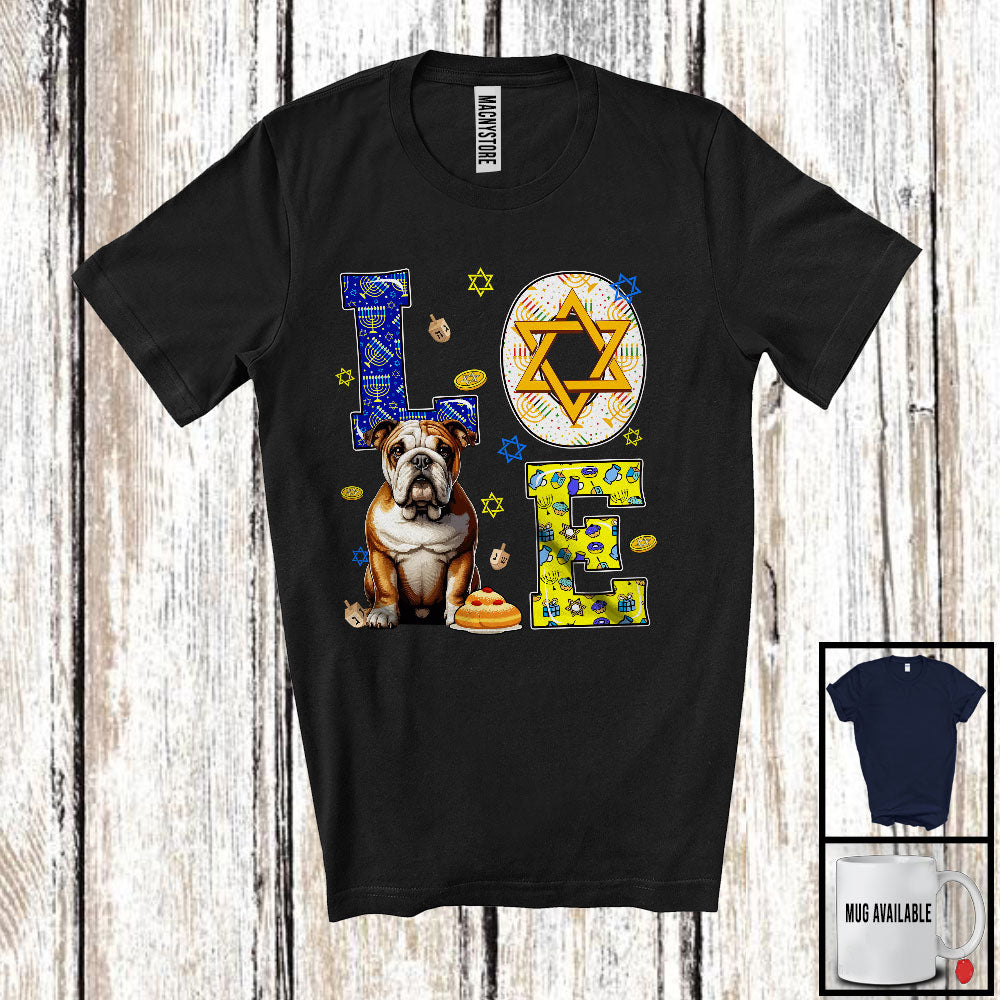 LOVE; Awesome Hanukkah Decoration Lovely Bulldog Owner; Pajama Family Group T-Shirt. This cotton t-shirt is a durable staple product with a classic fit. One of the most popular items, it has a relaxed style made for everyday and casual wear.