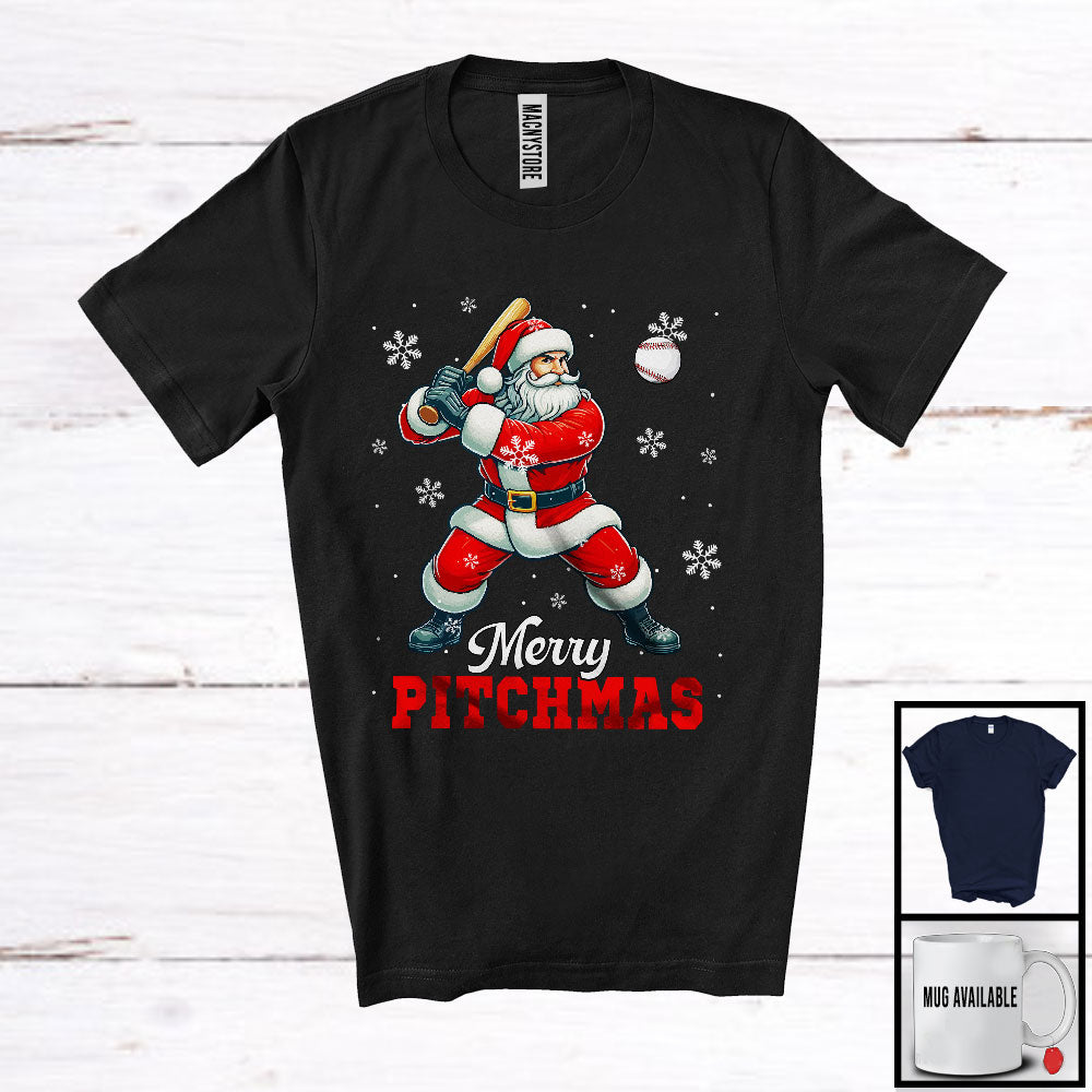 Merry Pitchmas; Awesome Christmas Santa Playing Baseball; Pitcher Sport Player Team T-Shirt
