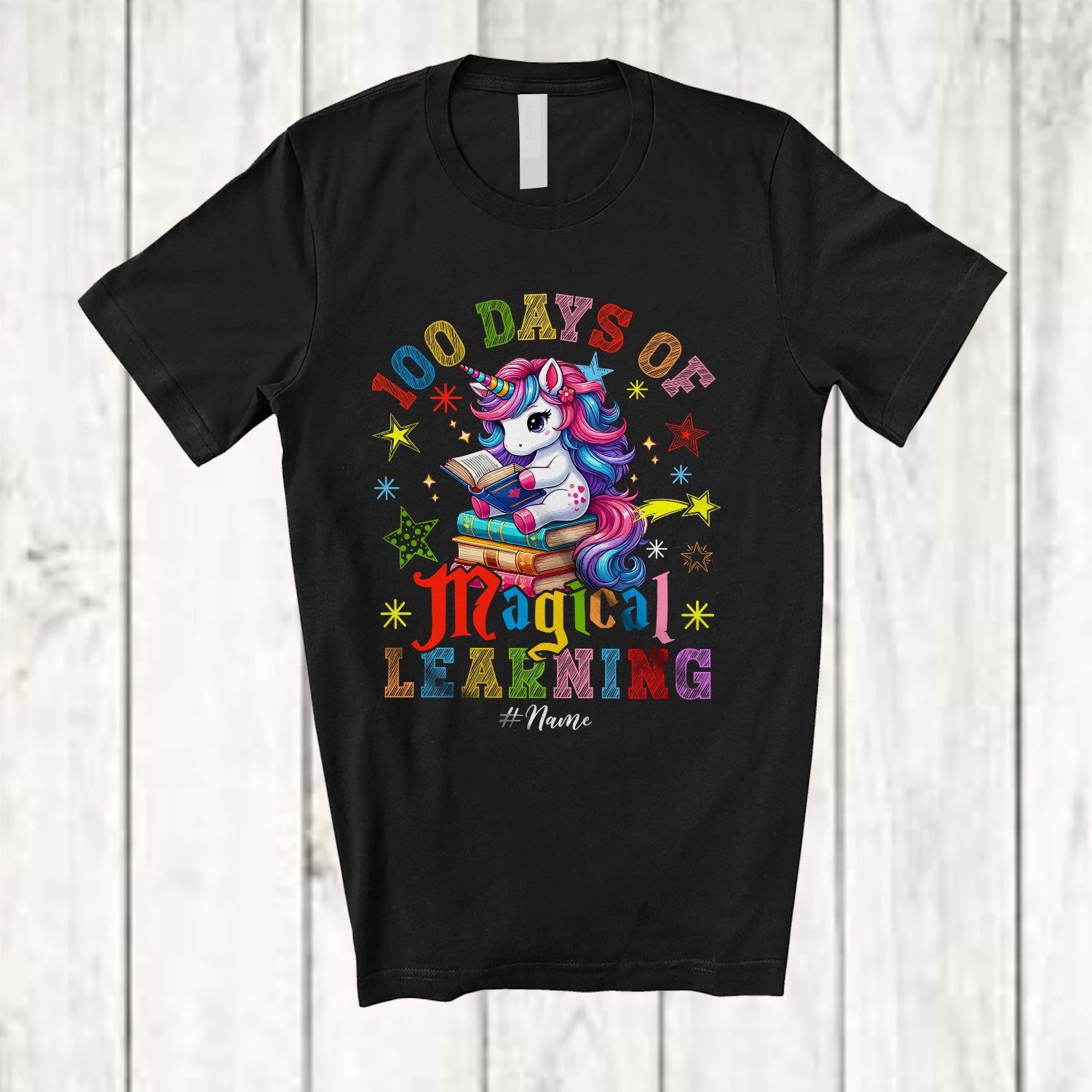 Personalized 100 Days Of Magical Learning; Amazing Custom Name Unicorn Reading Book T-Shirt