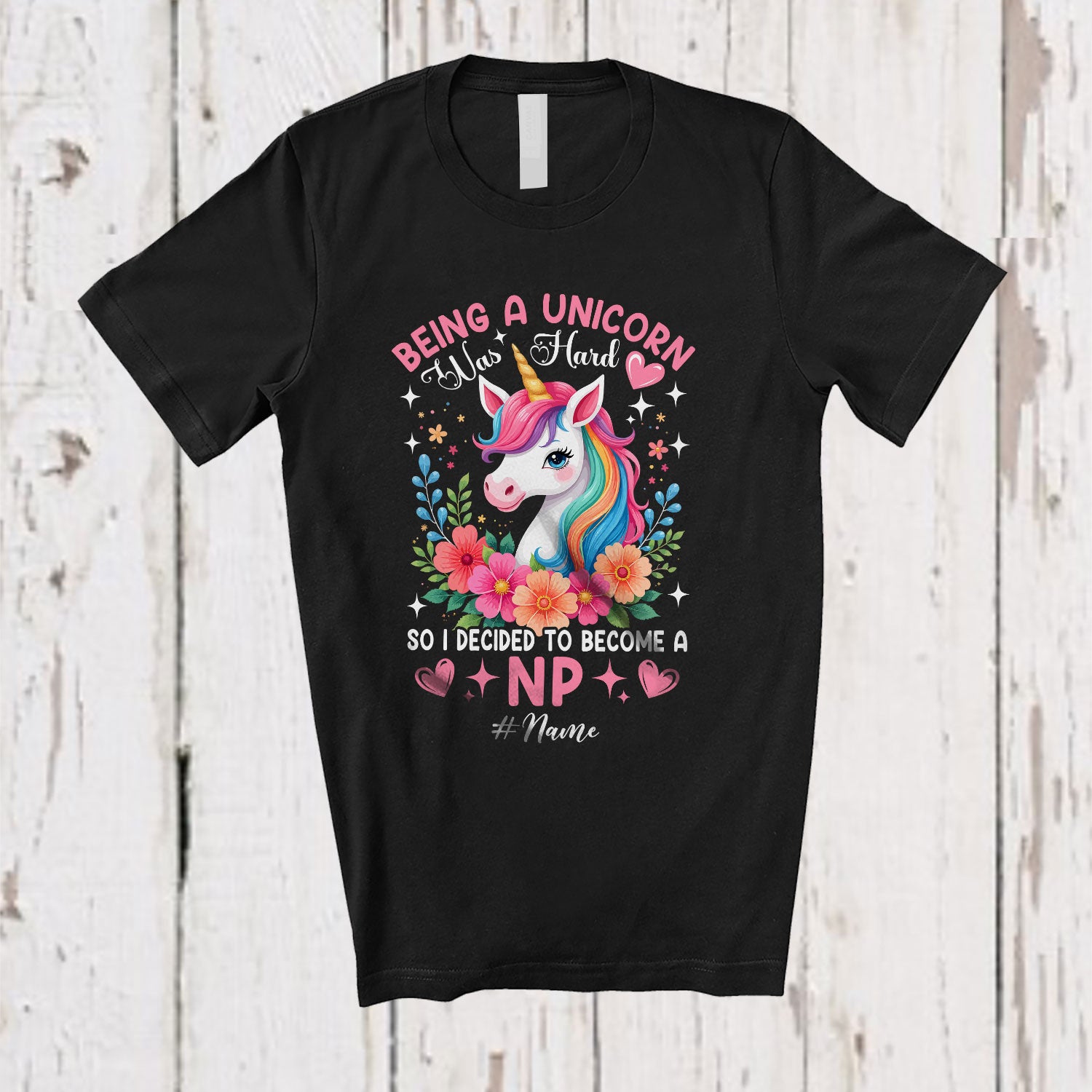 Personalized Being A Unicorn Was Hard Become A NP; Lovely Custom Name Nurse Flowers Floral T-Shirt. This cotton t-shirt is a durable staple product with a classic fit. One of the most popular items, it has a relaxed style made for everyday and casual wear.
