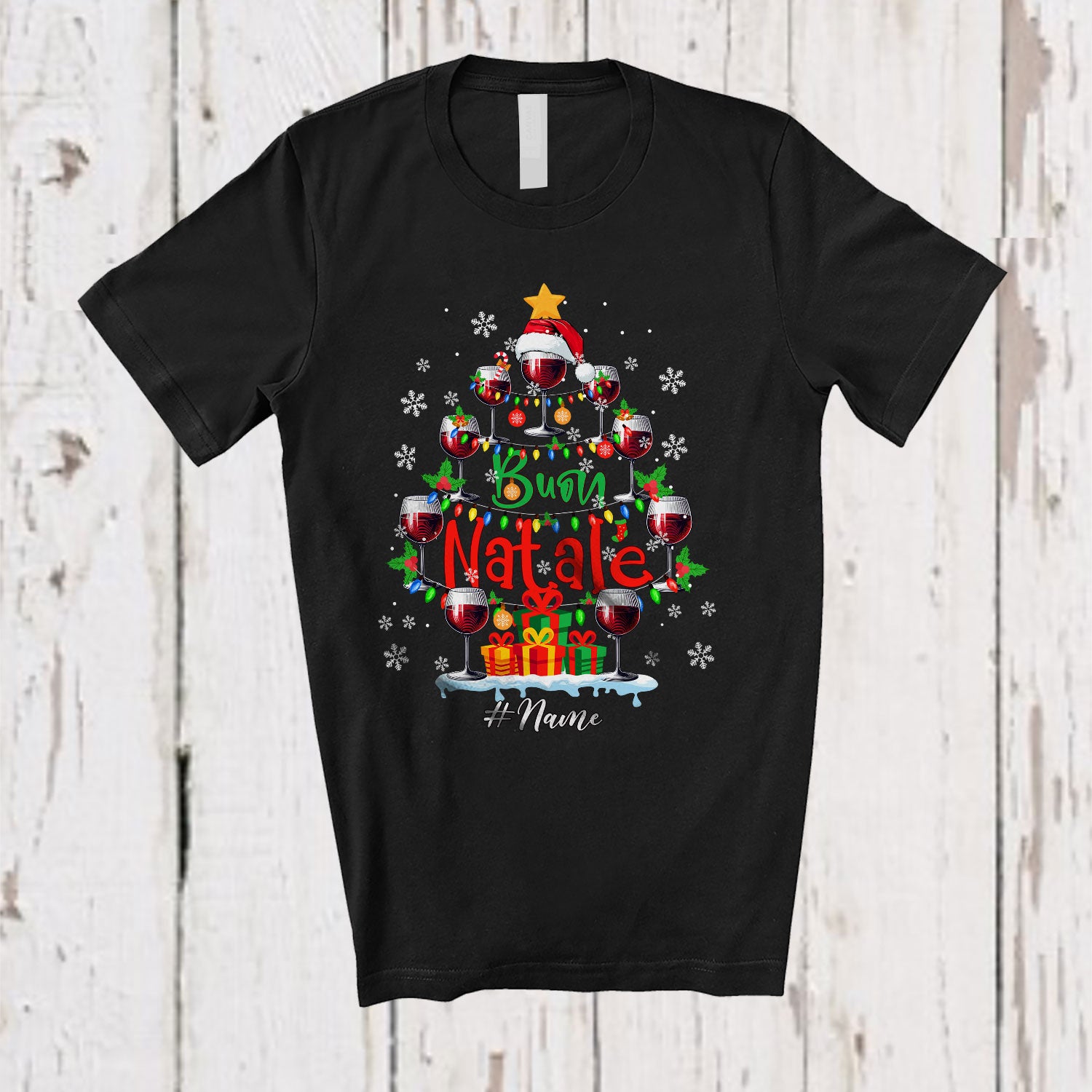 new MacnyStore - Personalized Buon Natale; Merry Christmas Lights Santa Wine; Custom Name Italian Wine Family T-Shirt – Macnystore