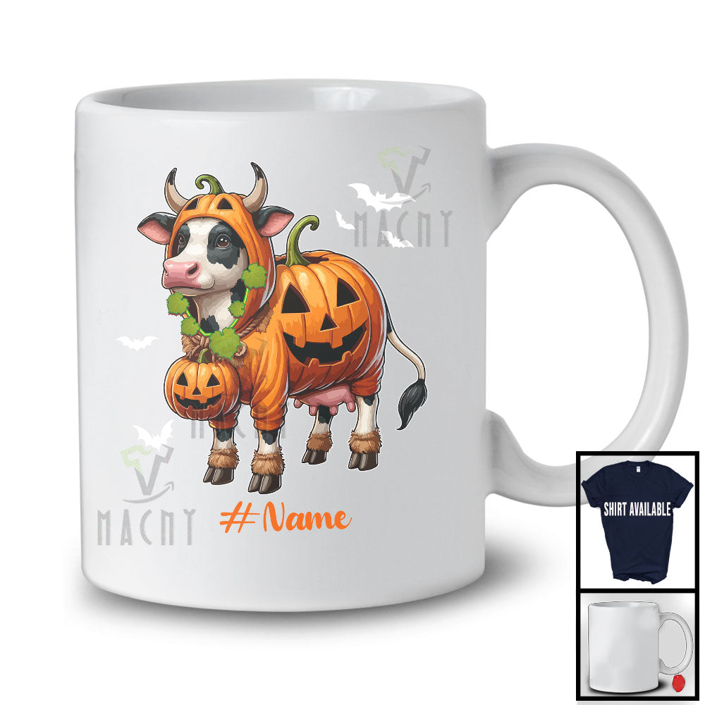 Personalized Cow Pumpkin Cosplay; Humorous Halloween Custom Name Cow; Farm Animal T-Shirt