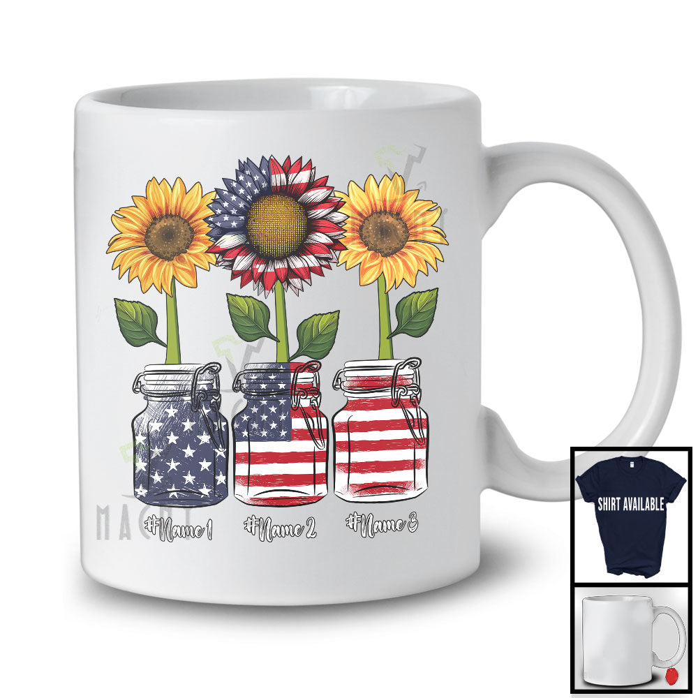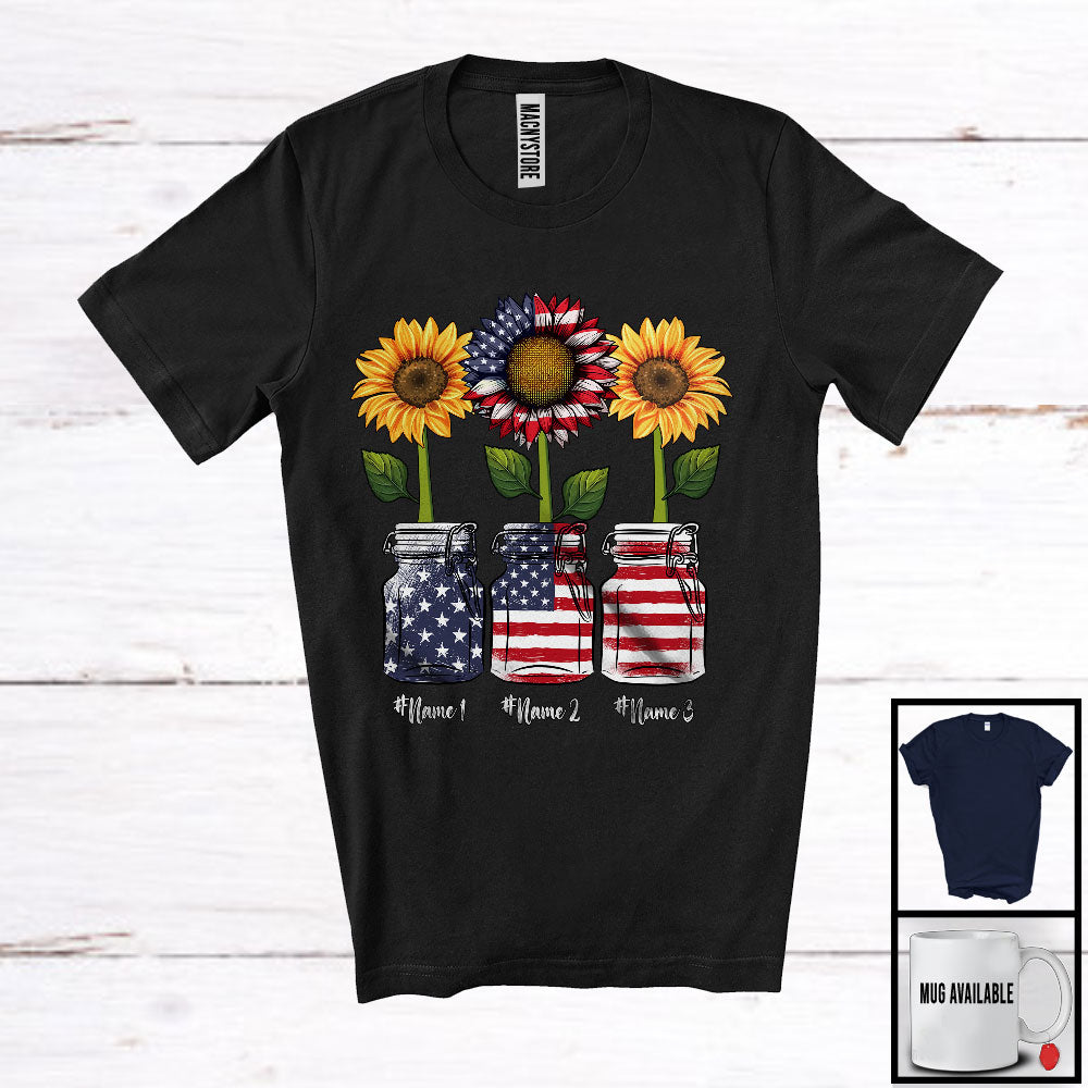 Personalized Custom Name American Flag Sunflowers, Lovely 4th Of July Flowers, Patriotic T-Shirt