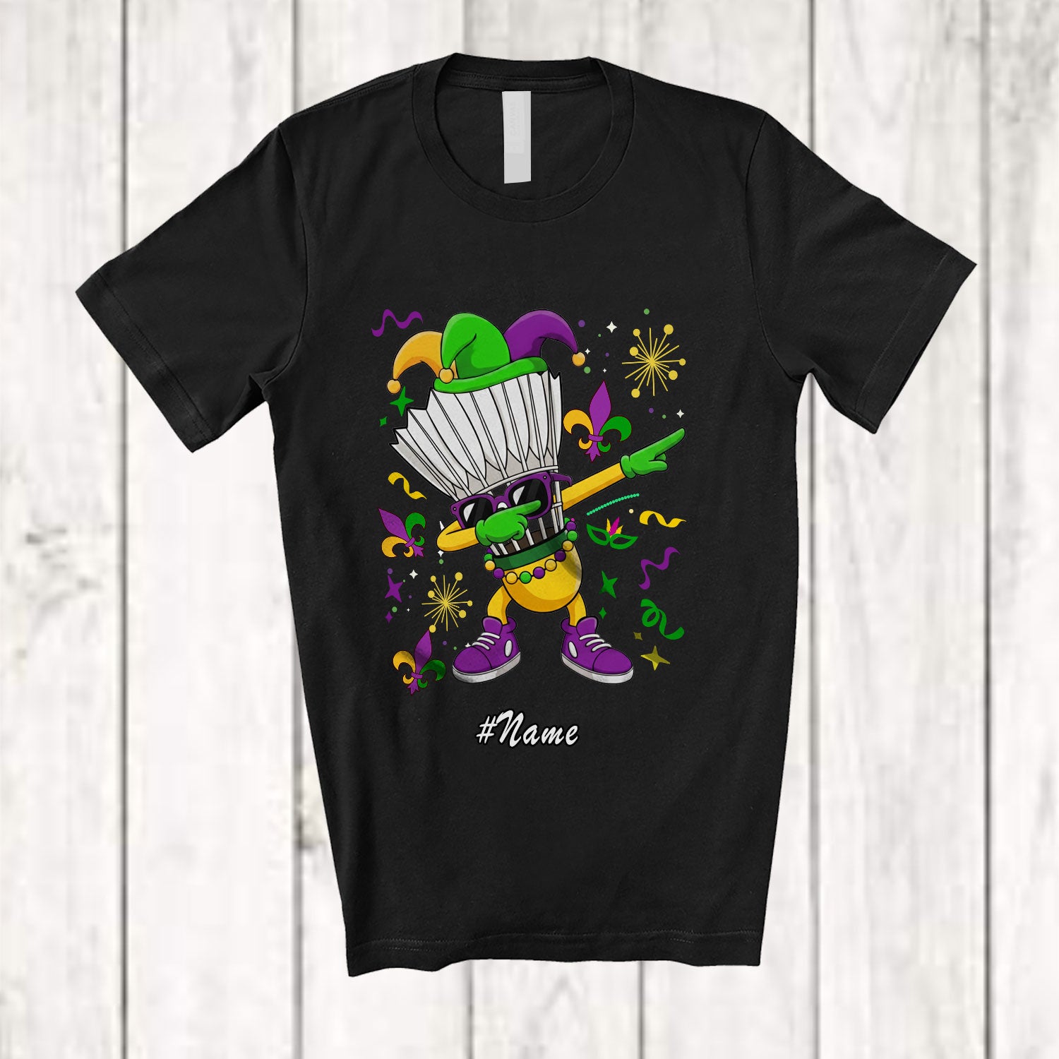 • Personalized Custom Name Badminton Dabbing Sunglasses; Joyful Mardi Gras Beads Sport Player T-Shirt. This cotton t-shirt is a durable staple product with a classic fit. One of the most popular items, it has a relaxed style made for everyday and casual wear.