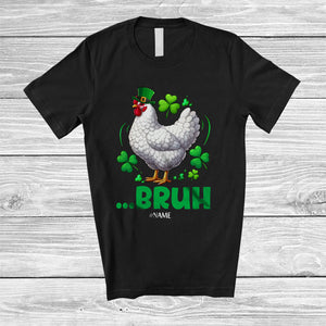 Personalized Custom Name Bruh Chicken; Joyful St. Patrick's Day Chicken Leprechaun Shamrocks T-Shirt