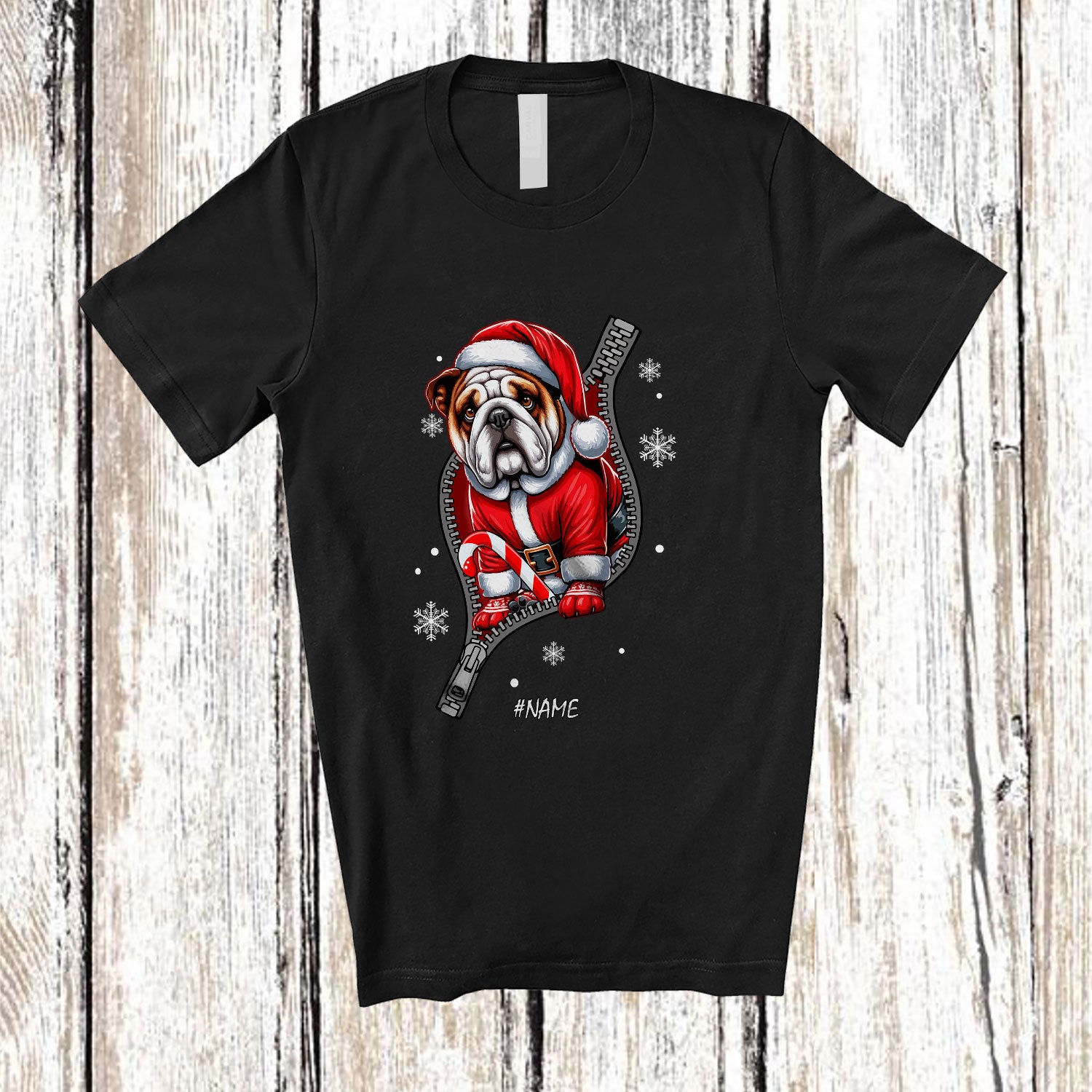 Personalized Custom Name Bulldog Santa Going Out Zipper; Lovely Christmas Pajama Family T-Shirt