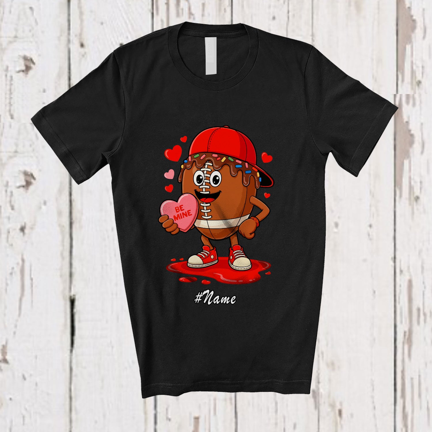 Personalized Custom Name Football Dripped Valentine; Humorous Hearts Sport Player Team T-Shirt