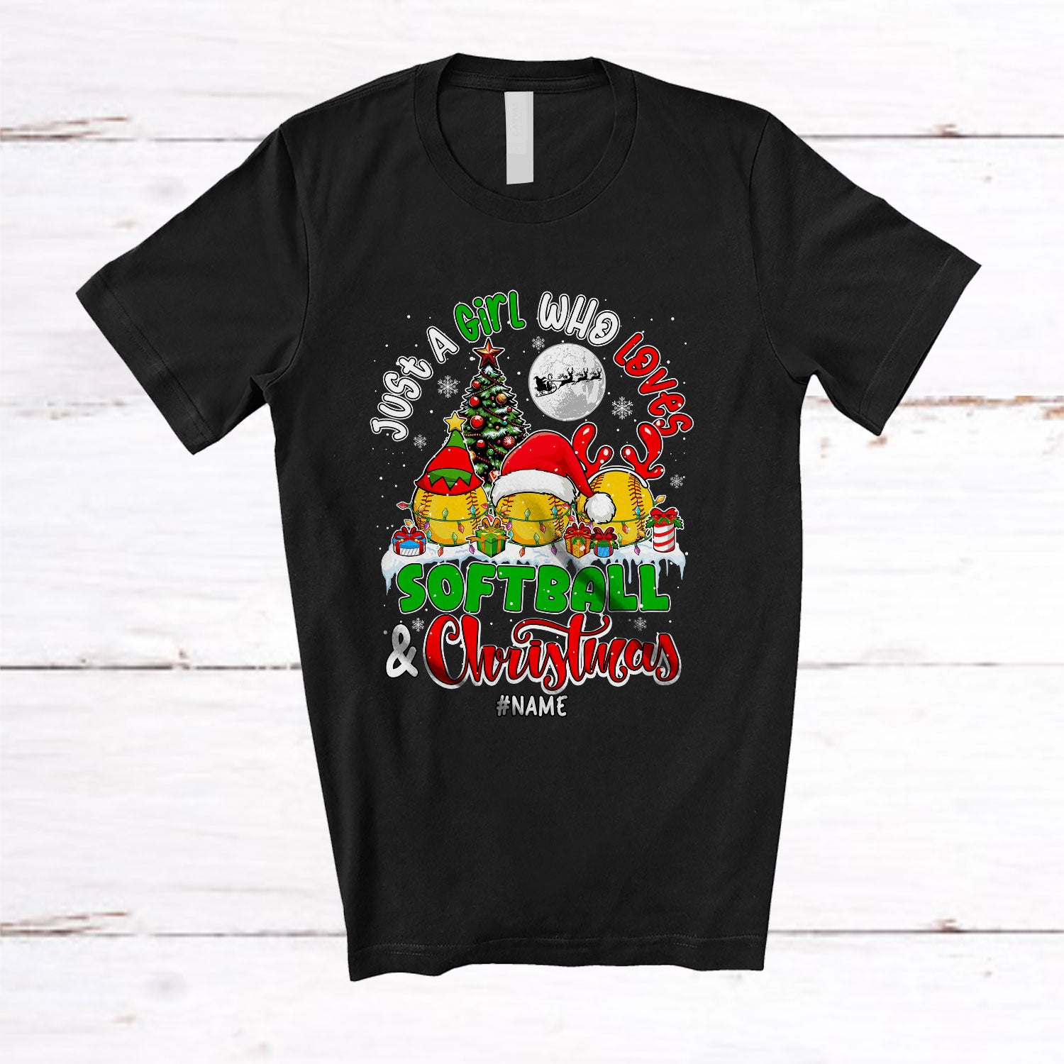 • Personalized Custom Name Girl Who Loves Softball Christmas; Amusing Custom Name Sport Player T-Shirt. This cotton t-shirt is a durable staple product with a classic fit. One of the most popular items, it has a relaxed style made for everyday and casual wear.