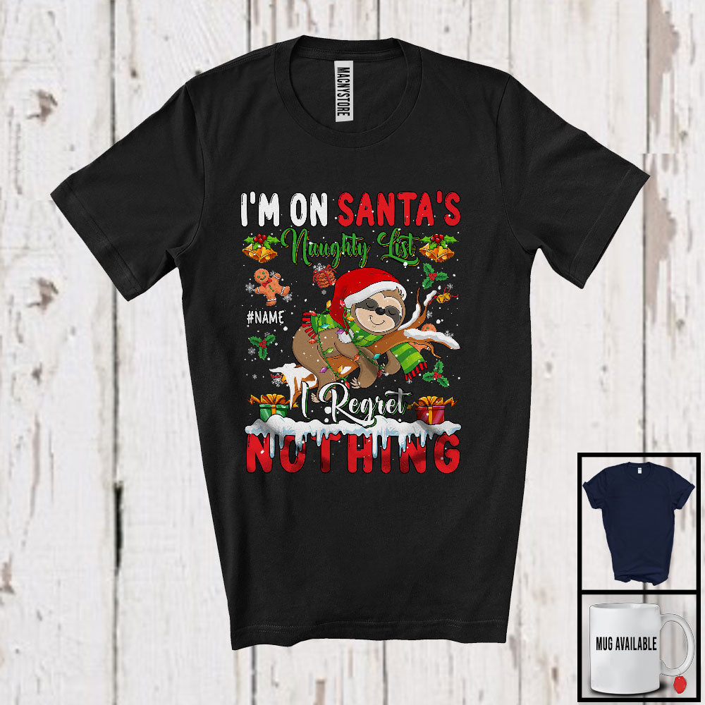 Personalized Custom Name I'm On Santa's Naughty List, Sarcastic Christmas Sloth, Family X-mas T-Shirt