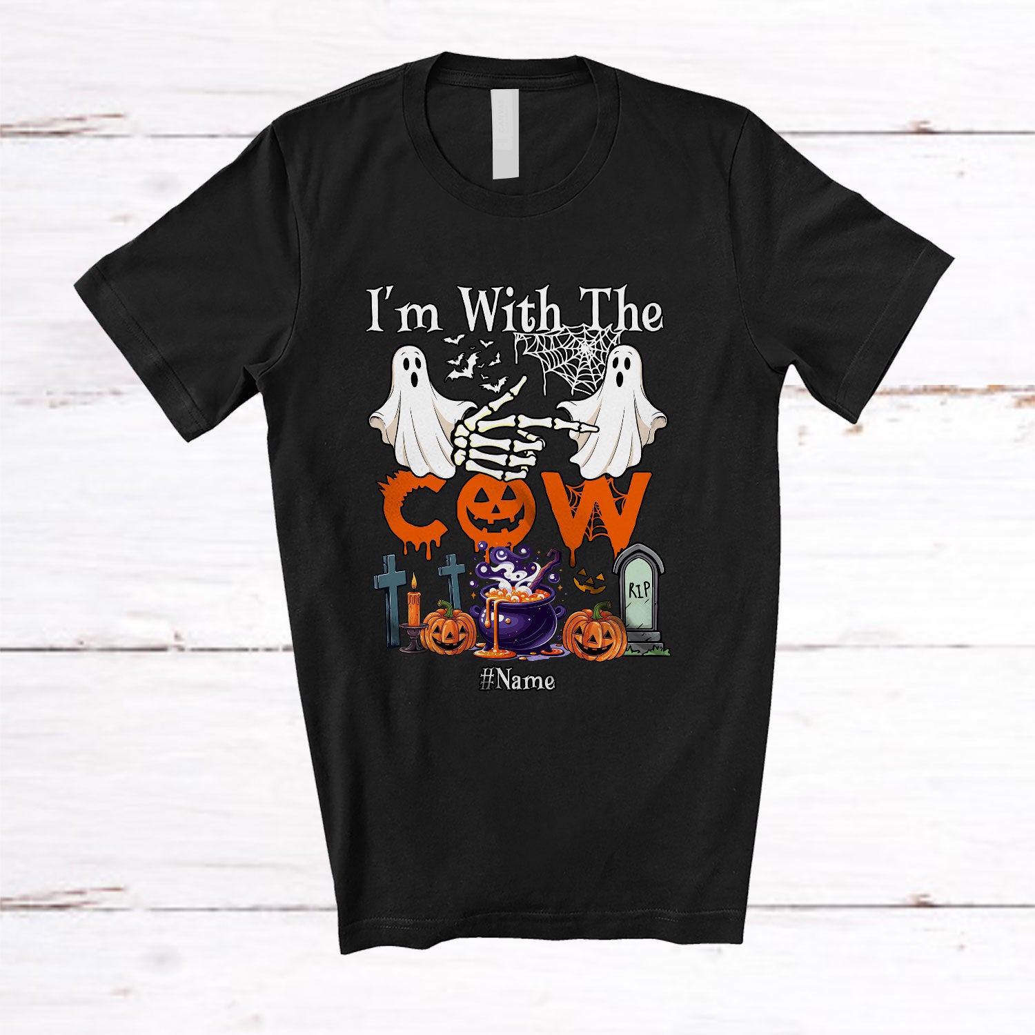 Personalized Custom Name I'm With The Cow; Amazing Halloween Boo Ghost; Couple T-Shirt