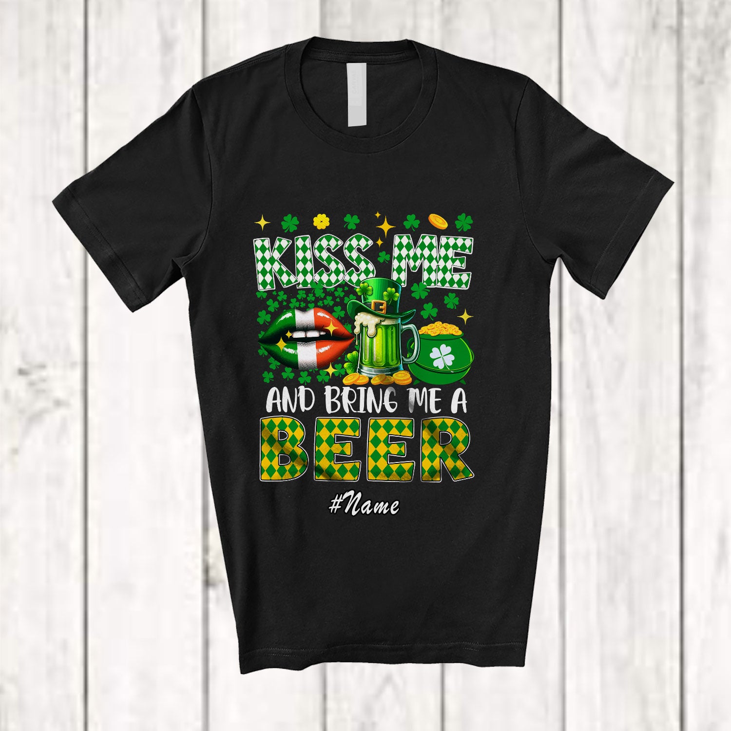 Personalized Custom Name Kiss And Bring Me A Beer; Joyful St. Patrick's Day Irish Lips; Drinking T-Shirt