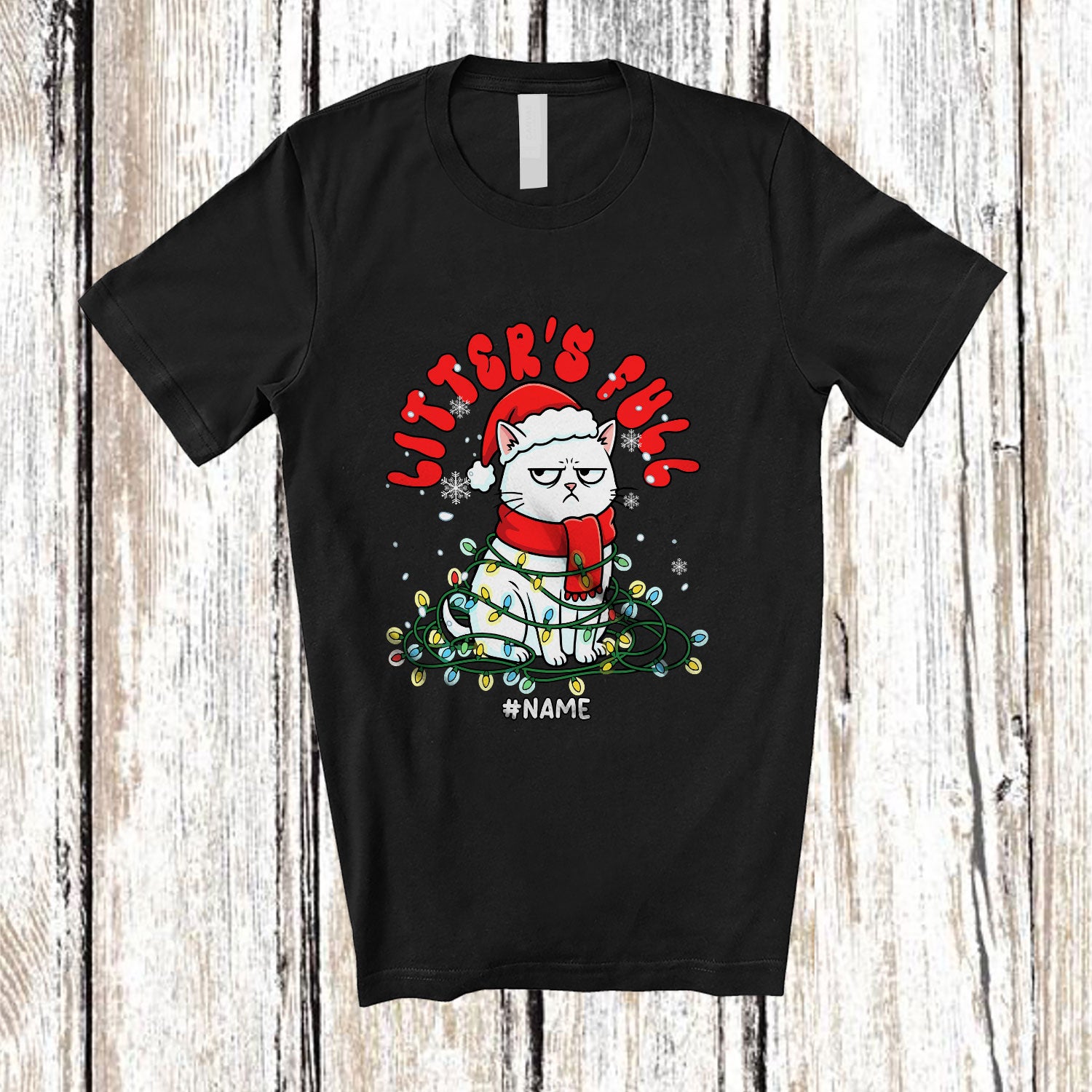 new MacnyStore - Personalized Custom Name Litter's Full; Humorous Christmas Lights Santa Cat Owner Lover T-Shirt – Macnystore