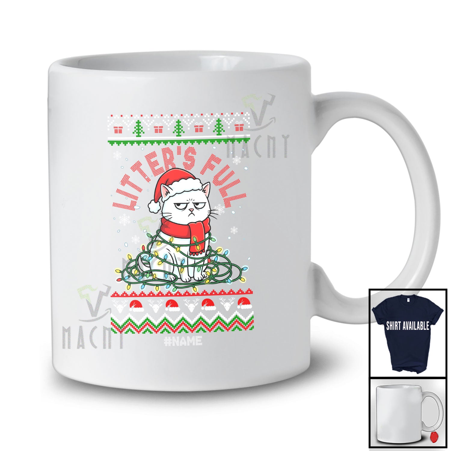 new MacnyStore - Personalized Custom Name Litter's Full; Humorous Christmas Lights Sweater Santa Cat Owner T-Shirt – Macnystore