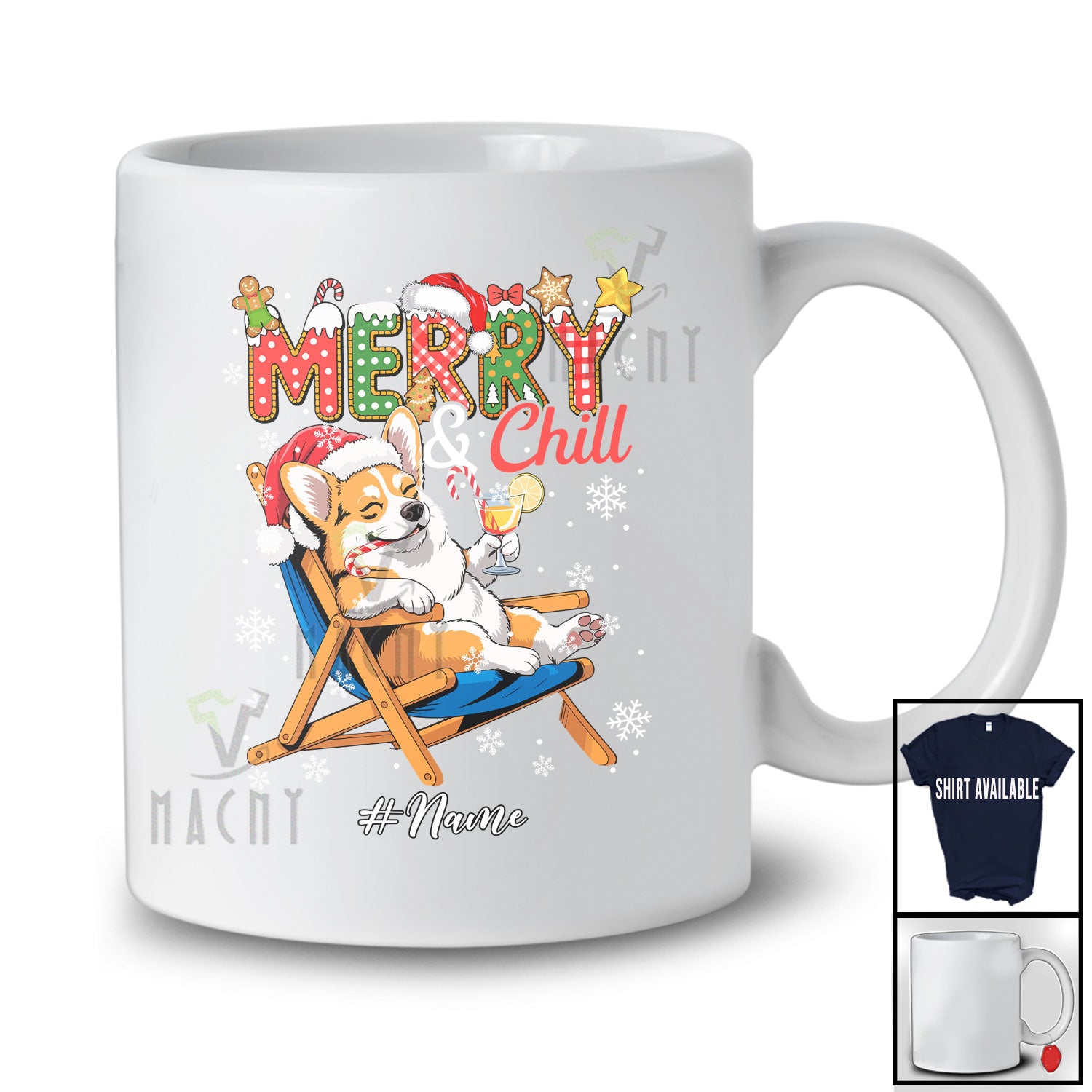 Personalized Custom Name Merry And Chill; Lovely Christmas Holiday Vacation Santa Corgi T-Shirt