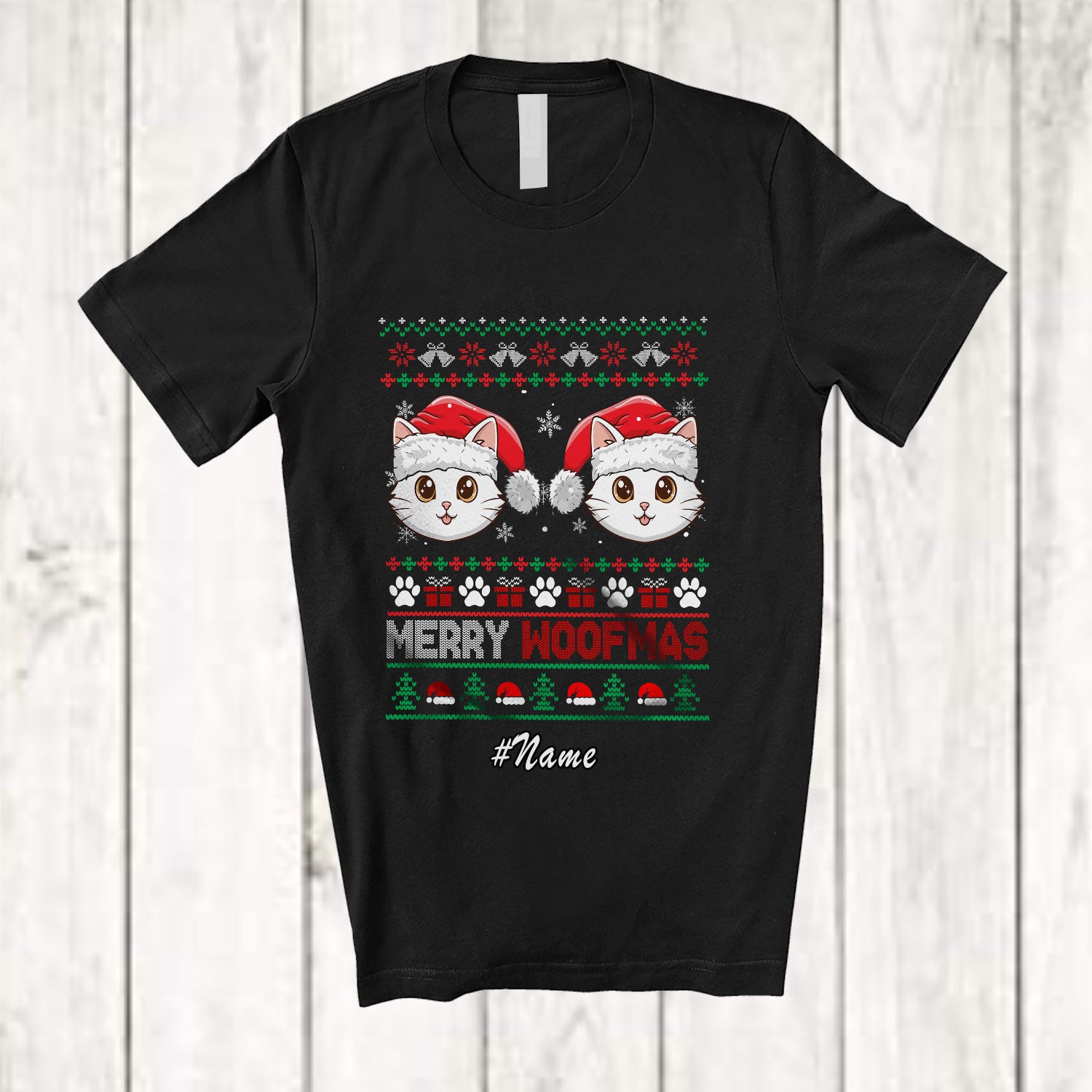 Personalized Custom Name Merry Woofmas; Lovely Christmas Sweater Santa Cat Face Owner T-Shirt