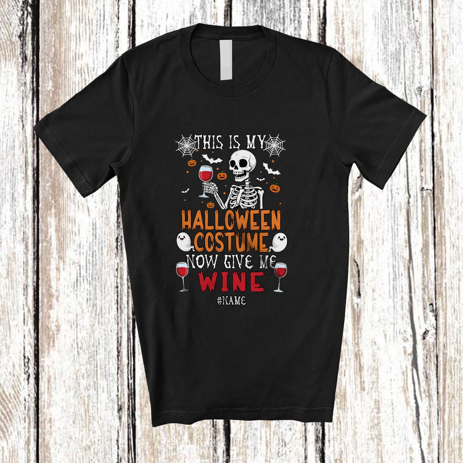 Personalized Custom Name My Halloween Costume Now Give Me Wine; Scary Skeleton Drinking T-Shirt