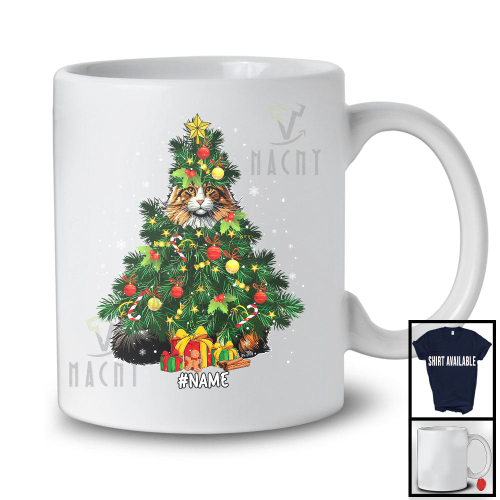 Personalized Custom Name Norwegian Forest Cat Christmas Tree Cosplay; Joyful Family; Snowing T-Shirt