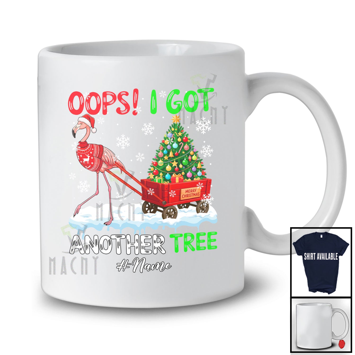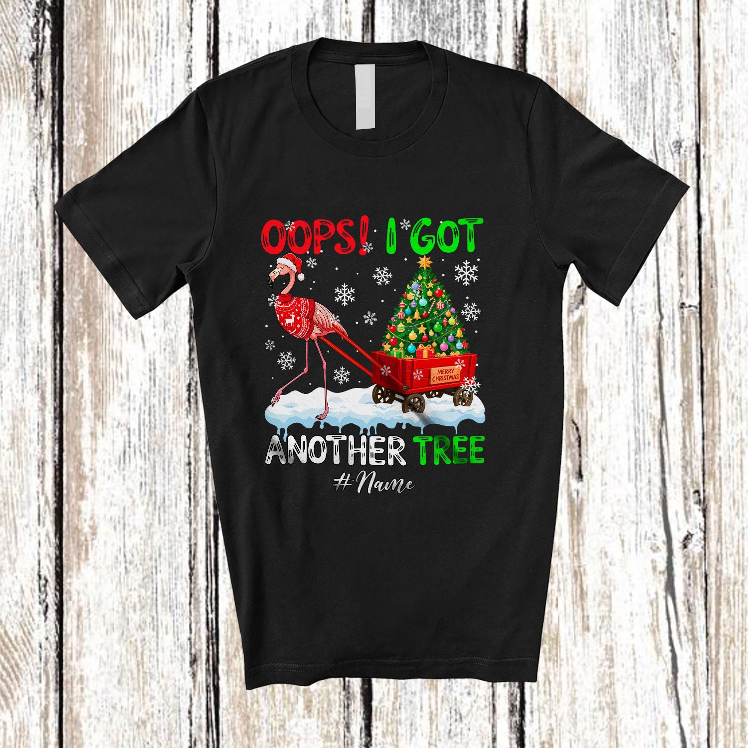 Personalized Custom Name Oops I Got Another Tree; Humorous Christmas Santa Tall Flamingo; Family T-Shirt