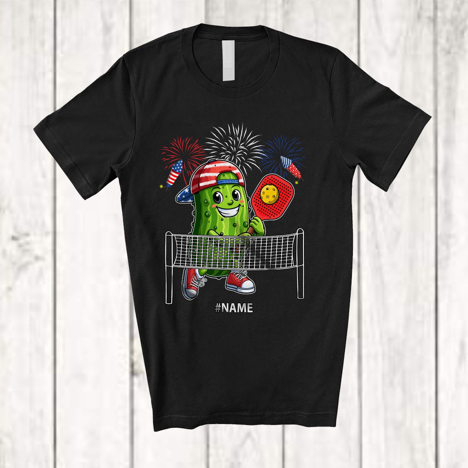 Personalized Custom Name Pickle Playing Pickleball; Joyful 4th Of July Sport Player; Patriotic T-Shirt