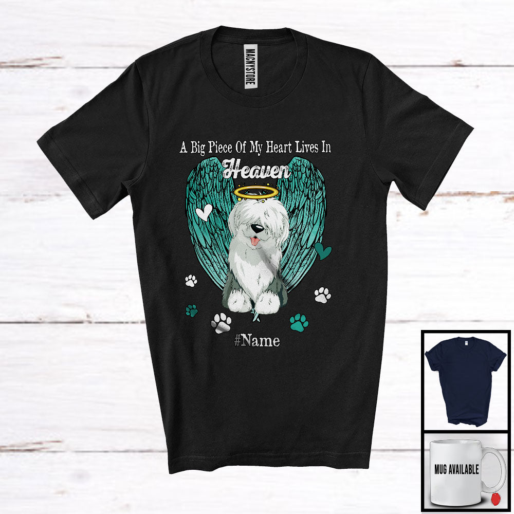 Personalized Custom Name Piece Of Heart In Heaven, Lovely Memories English Sheepdog Lover T-Shirt