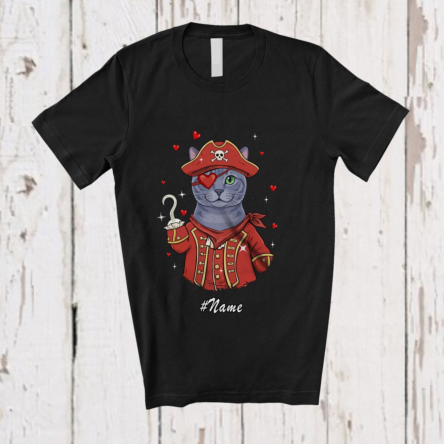 new MacnyStore - Personalized Custom Name Pirate Russian Blue Cat Valentine; Amazing Hearts Kitten Owner Lover T-Shirt – Macnystore