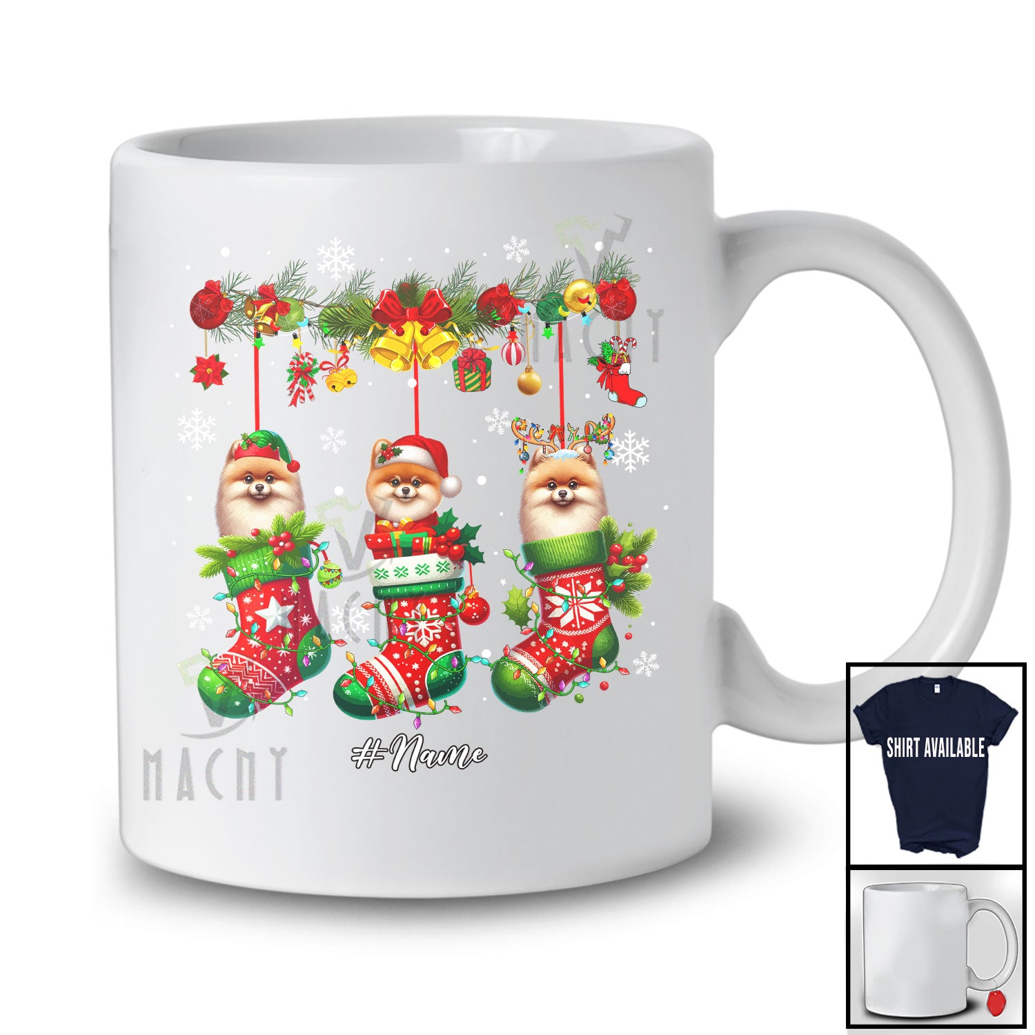 • Personalized Custom Name Pomeranian Dog In Three Christmas Socks; Lovely X-mas Lights Snow T-Shirt. This cotton t-shirt is a durable staple product with a classic fit. One of the most popular items, it has a relaxed style made for everyday and casual wear.