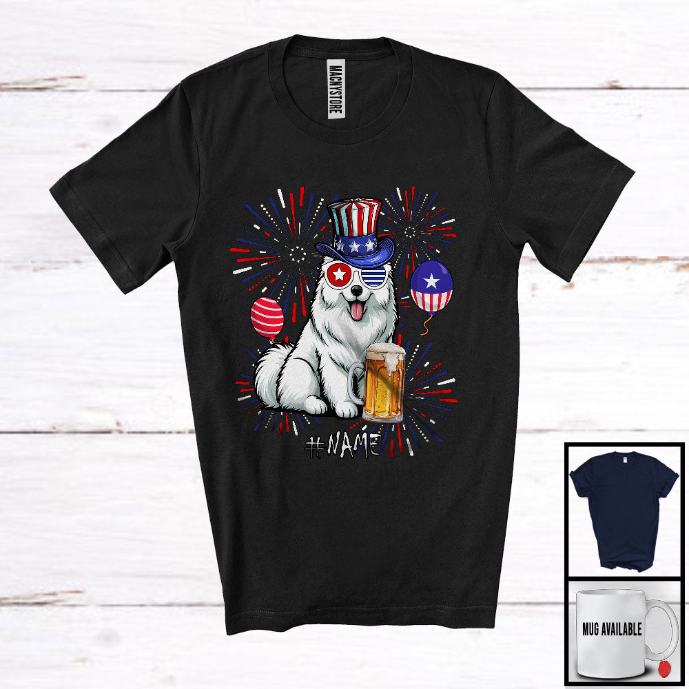 Personalized Custom Name Samoyed Drinking Beer, Lovely 4th Of July Fireworks, Patriotic T-Shirt