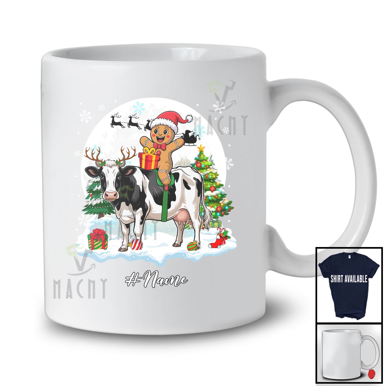 Personalized Custom Name Santa Gingerbread Man Riding Cow; Awesome Christmas Moon Baker T-Shirt. This cotton t-shirt is a durable staple product with a classic fit. One of the most popular items, it has a relaxed style made for everyday and casual wear.