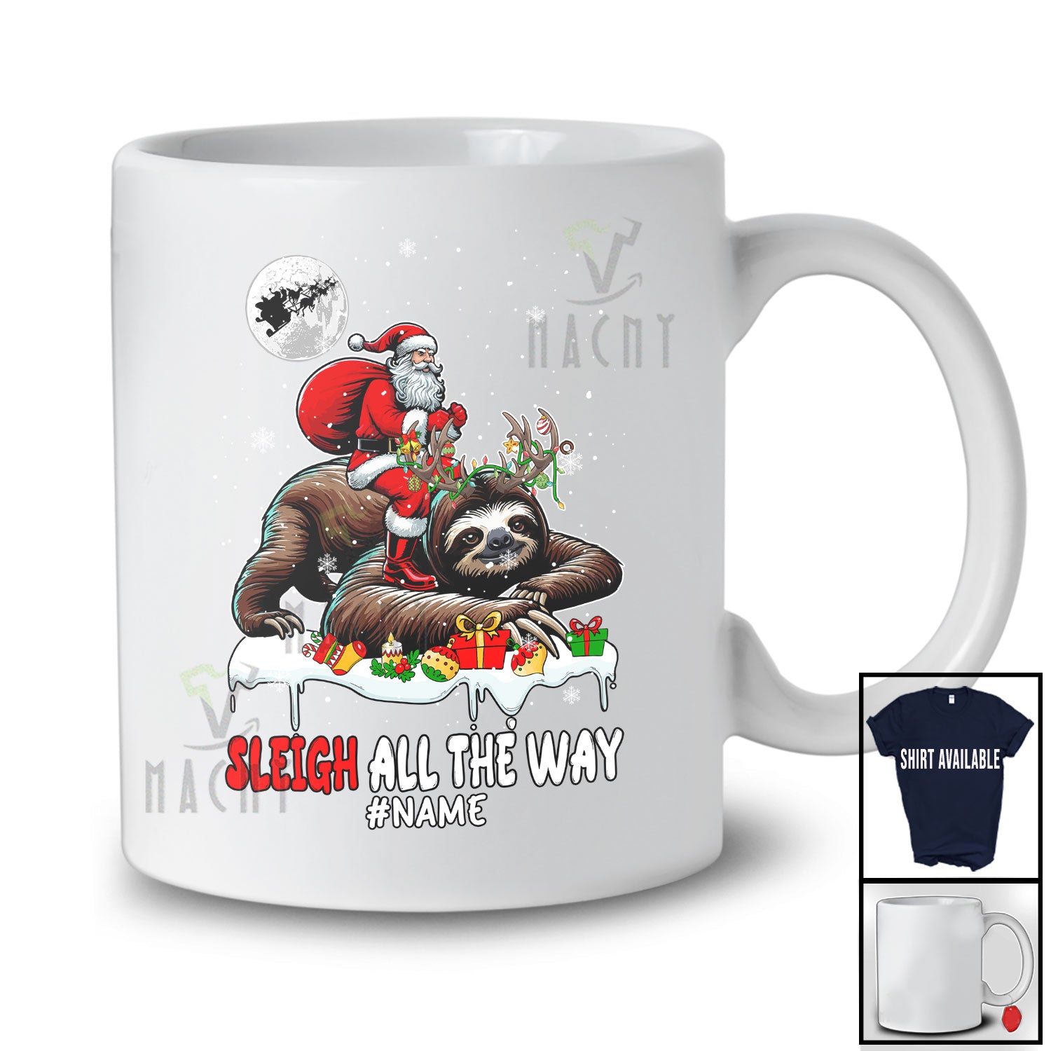 This Personalized Custom Name Sleigh All The Way; Awesome Christmas Santa Riding Sloth; Family T-Shirt is great idea gift for your family, friends in this birthday, christmas, mother's day, father's day, patrick's day or any holiday.