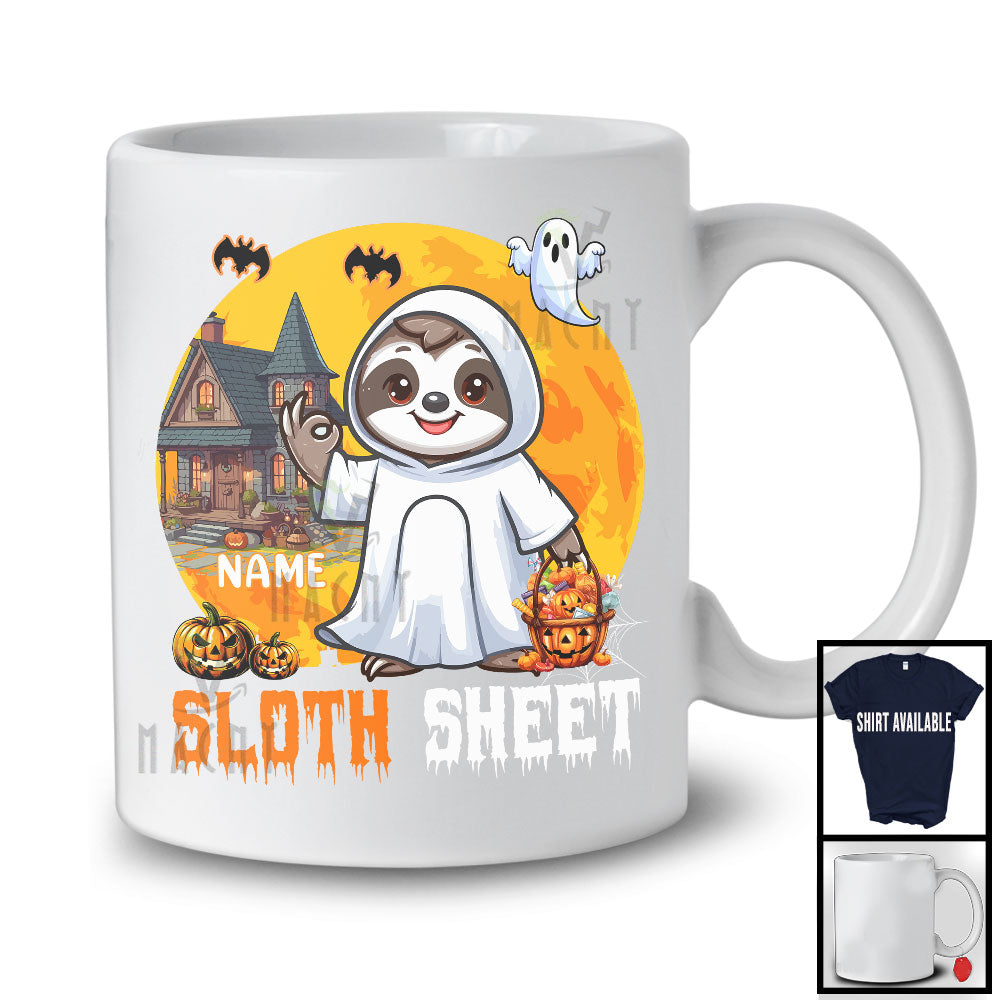Personalized Custom Name Sloth Sheet, Adorable Halloween Moon Boo Ghost Sloth Lover T-Shirt