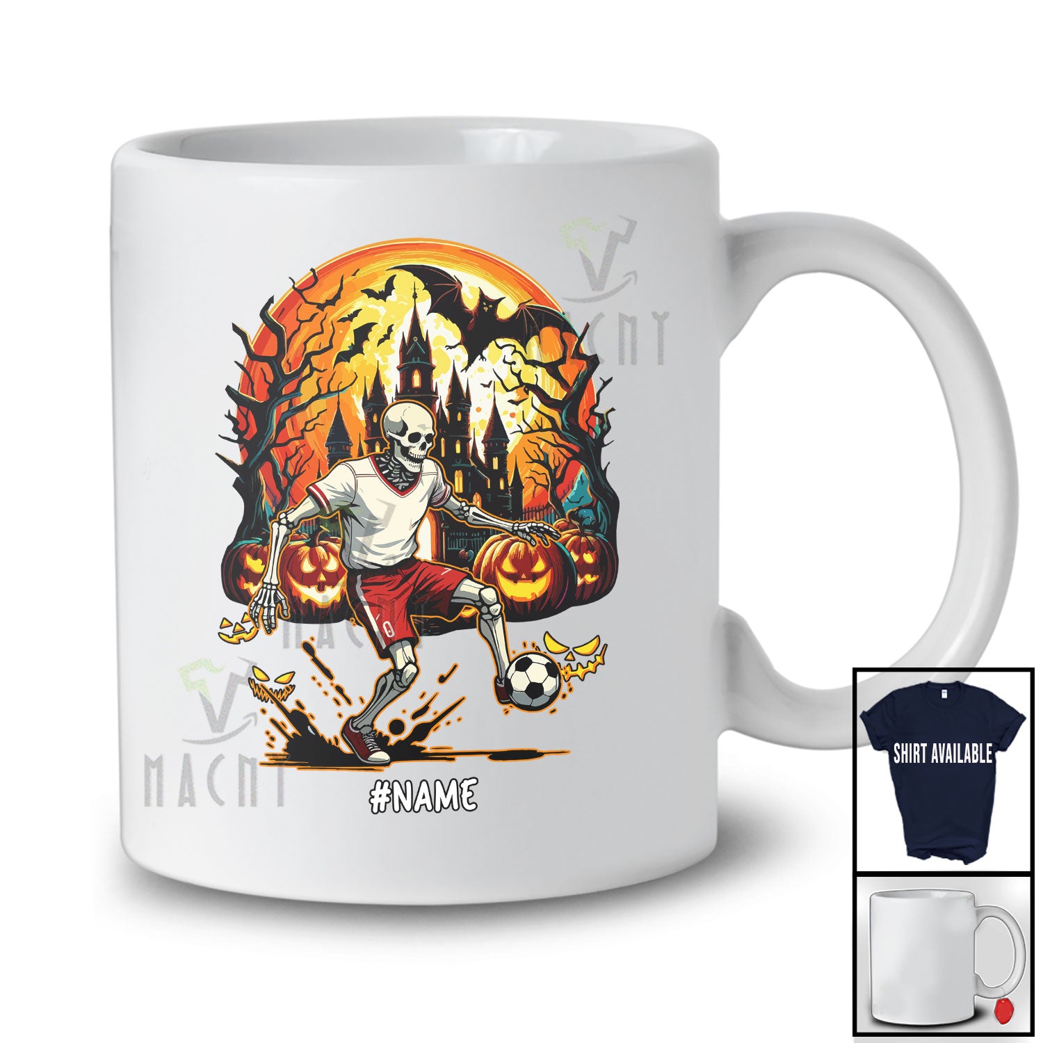 new MacnyStore - Personalized Custom Name Soccer Skeleton Player; Horror Halloween Moon Sport Playing Team T-Shirt – Macnystore