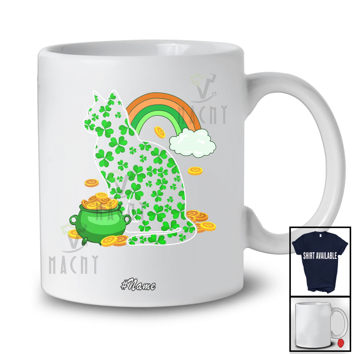 new MacnyStore - Personalized Custom Name St. Patrick's Day Cat Shape; Lovely Shamrock Cat Owner Lover T-Shirt – Macnystore