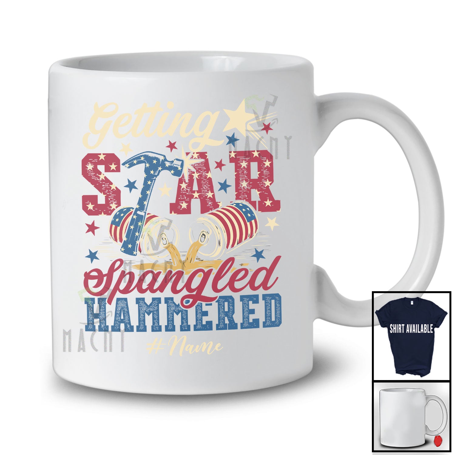 • Personalized Custom Name Star Spangled Hammered; Joyful 4th Of July Beer Drunk Drinking Patriotic T-Shirt. This cotton t-shirt is a durable staple product with a classic fit. One of the most popular items, it has a relaxed style made for everyday and casual wear.
