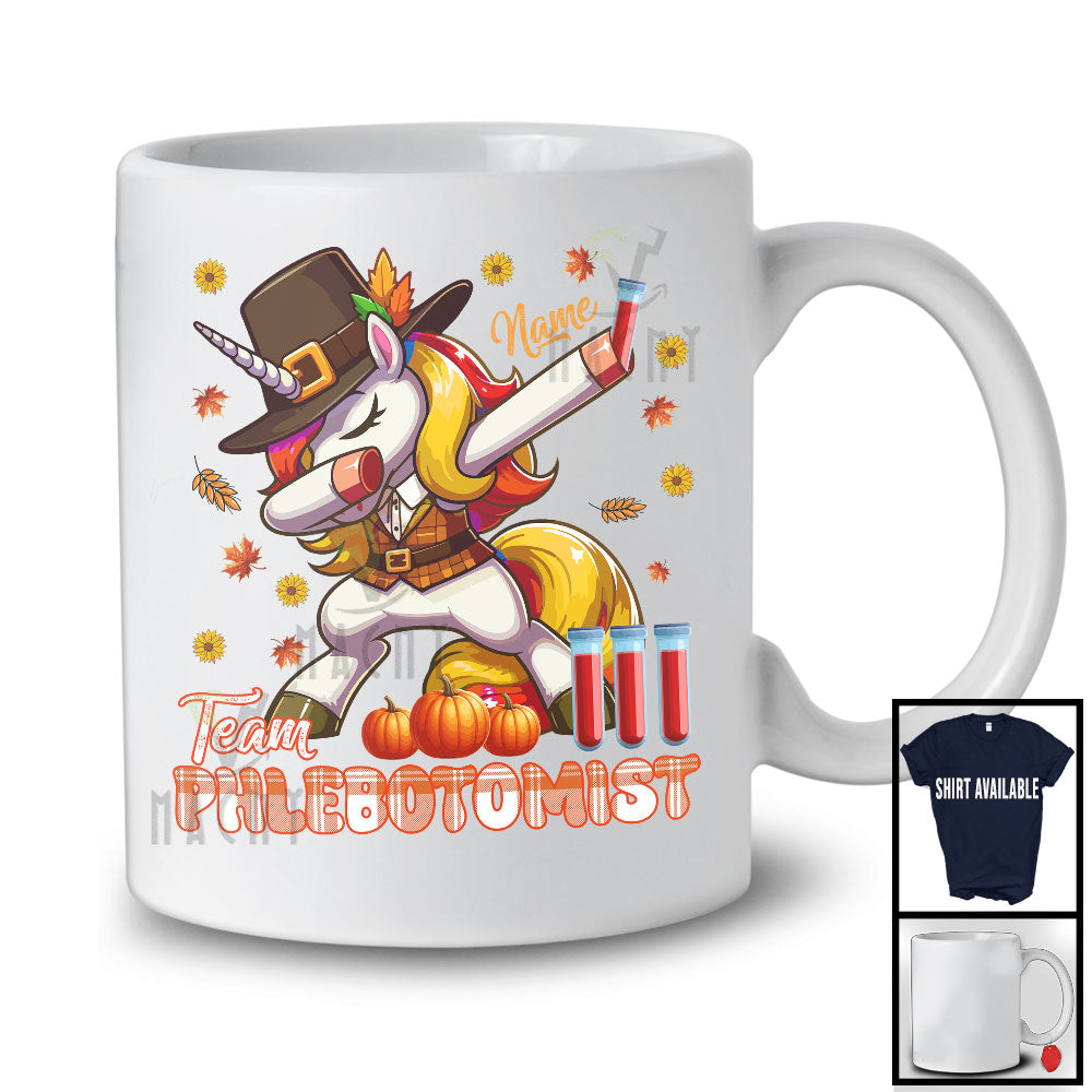 Personalized Custom Name Team Phlebotomist, Joyful Thanksgiving Dabbing Unicorn, Plaid Careers T-Shirt