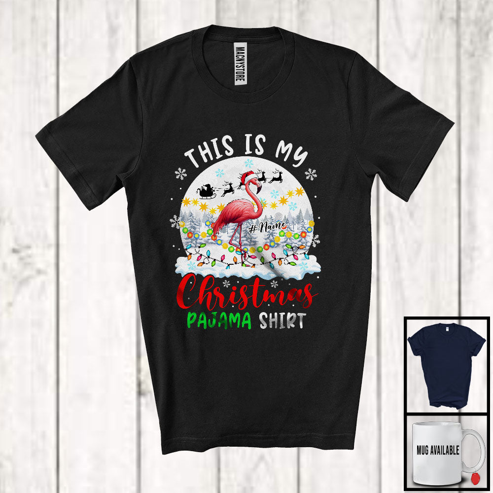 Personalized Custom Name This Is My Christmas Pajama; Lovely Santa Flamingo Lover; X-mas Moon T-Shirt. This cotton t-shirt is a durable staple product with a classic fit. One of the most popular items, it has a relaxed style made for everyday and casual wear.