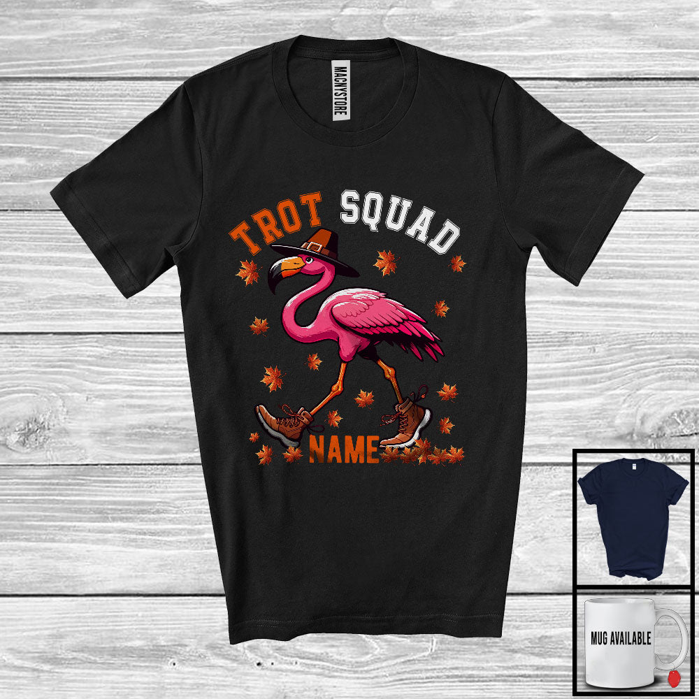 Personalized Custom Name Trot Squad, Humorous Thanksgiving Flamingo Marathon Running Runner T-Shirt